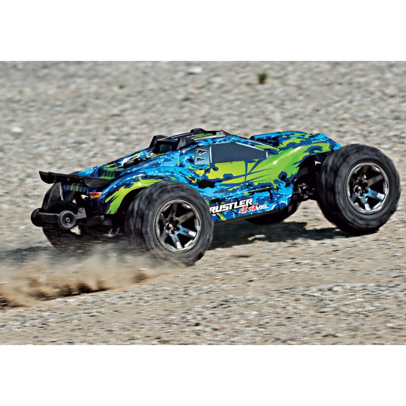 Le tout nouveau Rustler 4X4 VXL est une machine à roulettes à charge dure qui capture la vitesse et le style classique du Rustler numéro un et lui injecte des performances brutales à 4 roues motrices, une durabilité accrue et encore plus de plaisir! Enterrez l’accélérateur et le Rustler 4X4 VXL lance ses roues avant vers le ciel alors qu’il déchiquette le sol en dessous. Sous la carrosserie élégante sans clip, la chaîne cinématique robuste offre une puissance sans balais Velineon extrême. Le plus grand Talon®®™ Les roues et les pneus EXT offrent polyvalence et adhérence pour tous les terrains, des sentiers de jardin aux skateparks en béton. Rustler 4X4 VXL détruit les conventions pour devenir le nouveau standard de performance et de plaisir pour les camions de stade 4X4!